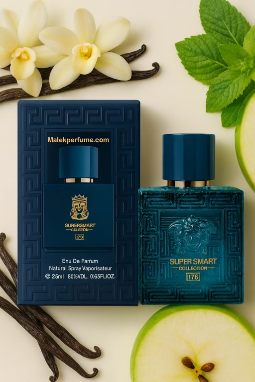 ادکلن ورساچه اروس مردانه سوپراسمارت ۲۵ میل (کد 176) یکی از پرانرژیترین و جذابترین عطرهای مردانه از برند Super Smart Collection است که با الهام از نسخه اصلی Versace Eros ساخته شده و رایحهای خنک، شیرین و اغواگر دارد.